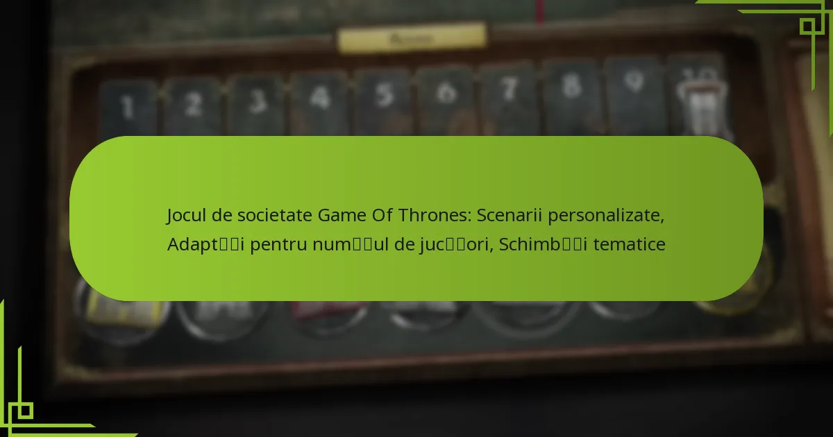 Jocul de societate Game of Thrones poate fi îmbunătățit prin diverse schimbări tematice care se inspiră atât din seria TV, cât și din cărți. Aceste adaptări pot crea o experiență mai imersivă, permițând jucătorilor să interacționeze cu lore-ul și personajele în moduri noi.