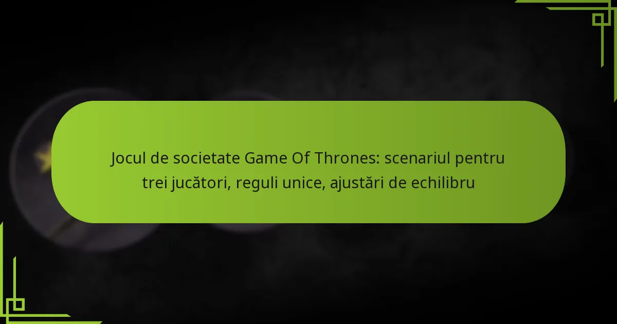 Jocul de societate Game of Thrones realizează echilibrul într-un scenariu cu nouă jucători printr-un design atent al punctelor forte și slabe ale personajelor, mecanisme de joc corecte și strategii pentru a atenua avantajele jucătorilor dominanți. Aceste elemente lucrează împreună pentru a asigura că toți jucătorii au o șansă corectă la victorie, indiferent de nivelul lor de experiență sau de facțiunea aleasă.